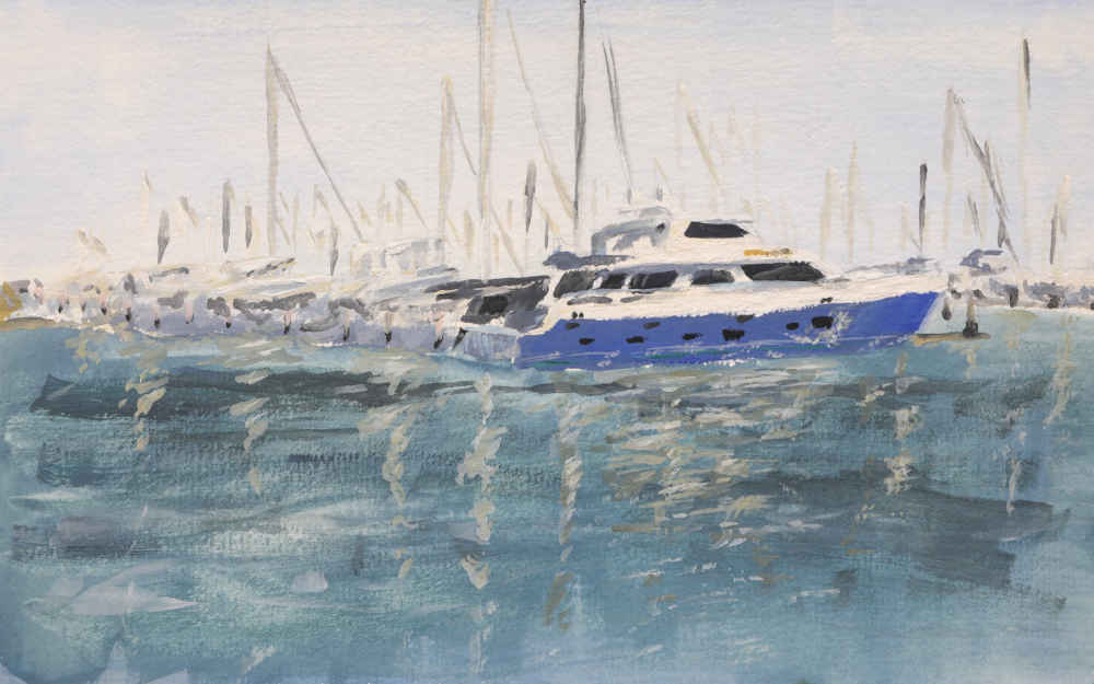 East of the Santa Barbara Marina is a jetty with a great view of the pier and docks. I sat on the jetty’s rocks to paint and watched the water ripple as boats and kayaks passed.